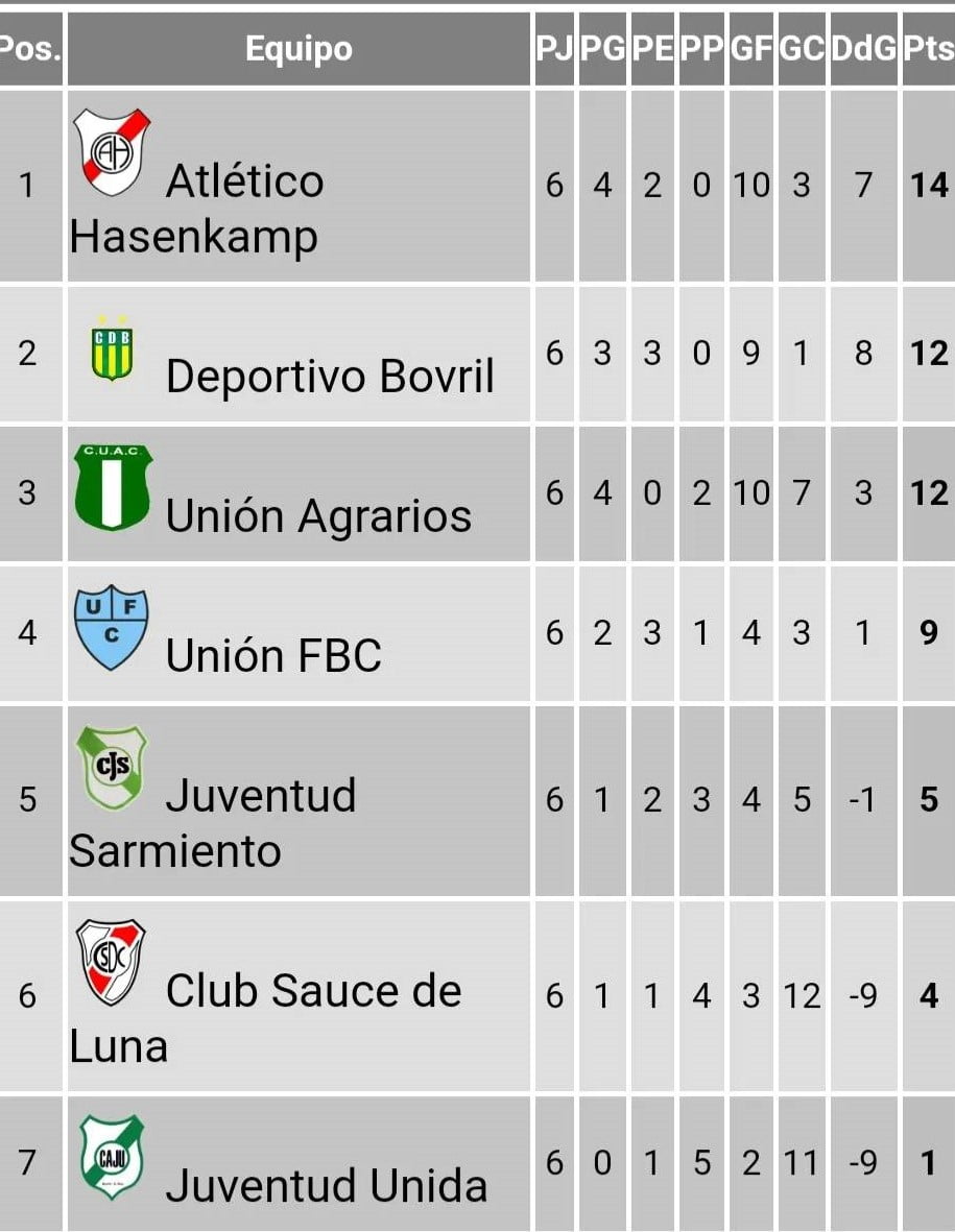 Mientras que en la Zona Norte, a Atlético Hasenkamp le alcanzó el empate como visitante de Unión Alcaráz, 1 a 1, para seguir líder.