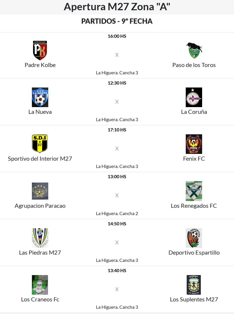 El líder Los Craneos FC con21 puntos, jugará ante Los Suplentes que se encuentra en mitad de tabla con 12 unidades. El partido se jugará en Cancha 3 desde las 13:40 y seguramente no será un partido fácil para quien comanda las posiciones.