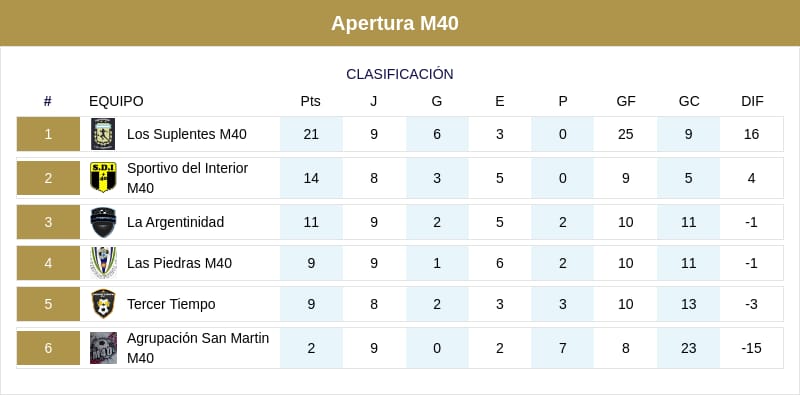 El líder Los Suplentes, mantuvo la misma ventaja de 7 puntos sobre su inmediato perseguidor que es Sp del Interior.