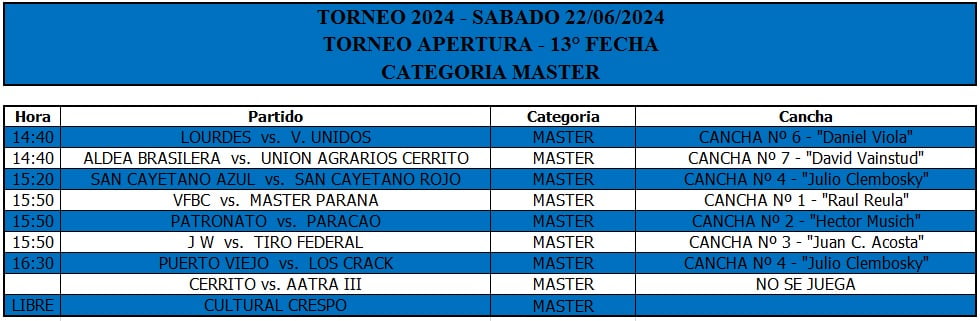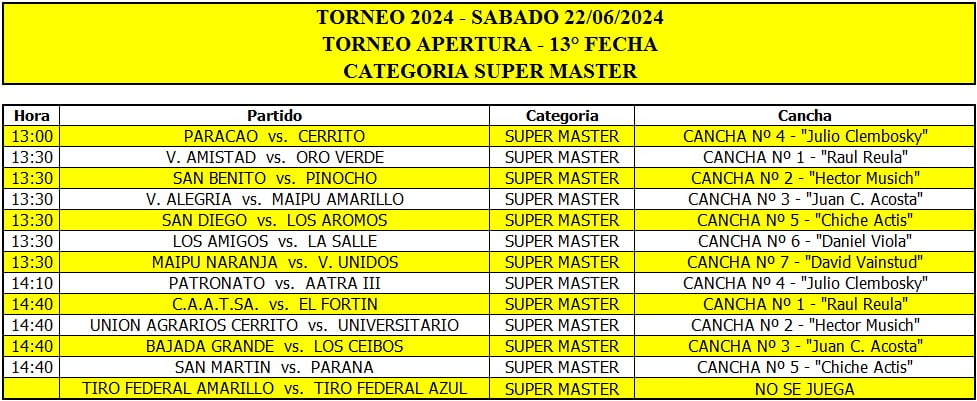 En este informe también encontraras al final de cada Categoría, toda la programación para este sábado 22.