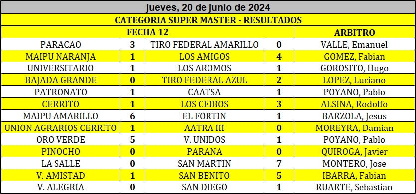 Por otra parte, en esta categoría Super Master, es importante destacar que la fecha 12 dejó tres buenas goleadas: