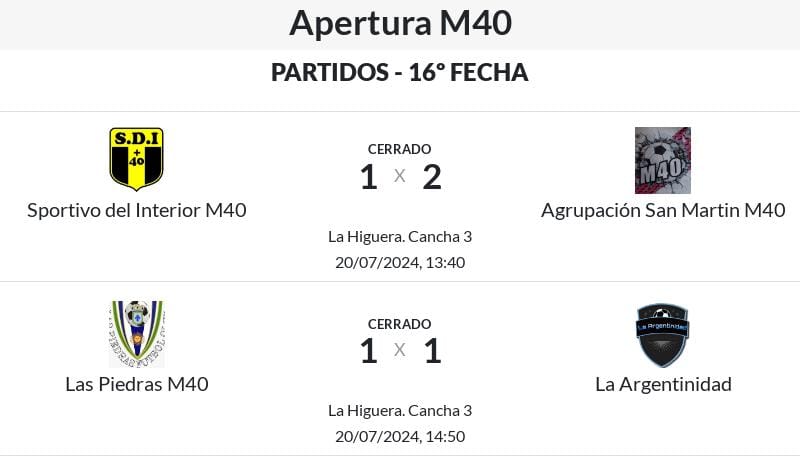 Sp del Interior cayó por 2 a 1 ante Agrupación San Martín y de este modo paso a compartir el segundo puesto con La Argentinidad que igualo con Las Piedras 1 a 1 y ahora suma también 25 puntos