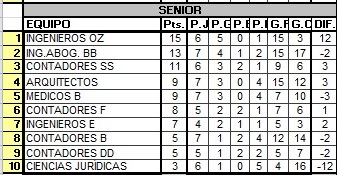 Con los resultados registrados pasaron a Semifinales Contadores D, Contadores J, Abogados E y Contadores S