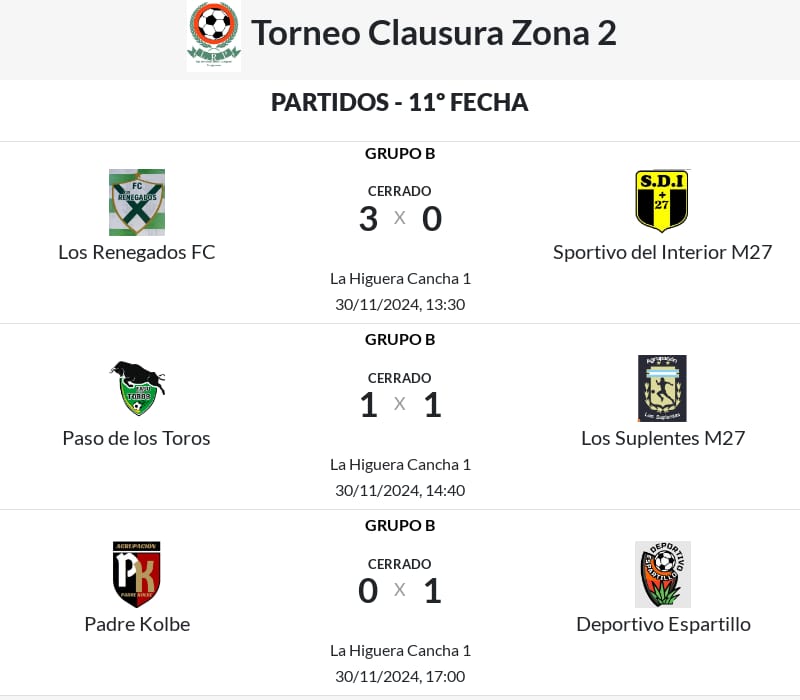 A falta de dos fechas Los Renegados es el gran candidato a quedarse con el Grupo, lidera con 21 puntos, a 4 de sus escoltas que son Paso de los Toros, Los Suplentes y Deportivo Espartillo.