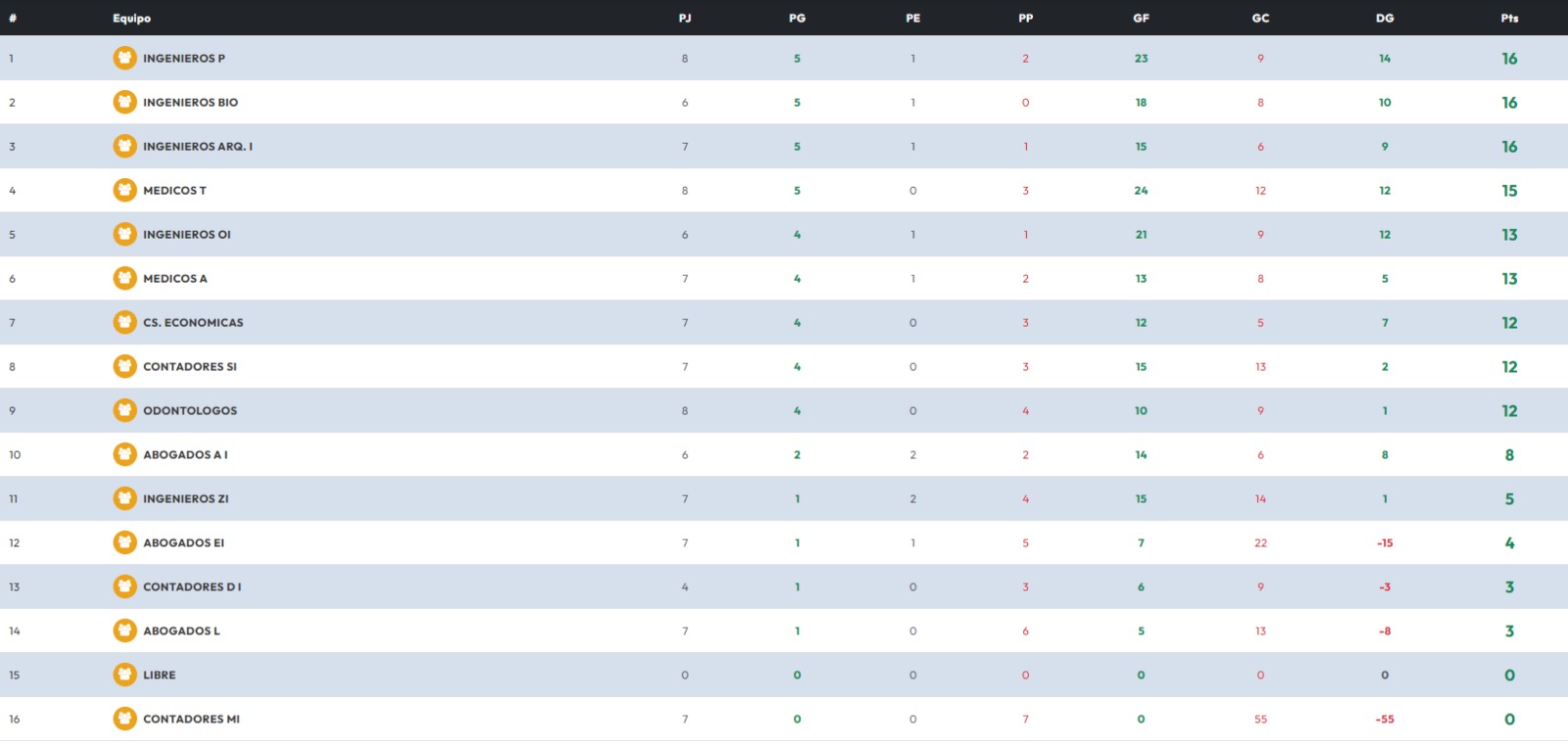 Contadores S uno de los líderes junto a Contadores V con 19 puntos, enfrentará este sábado a Ingenieros A.