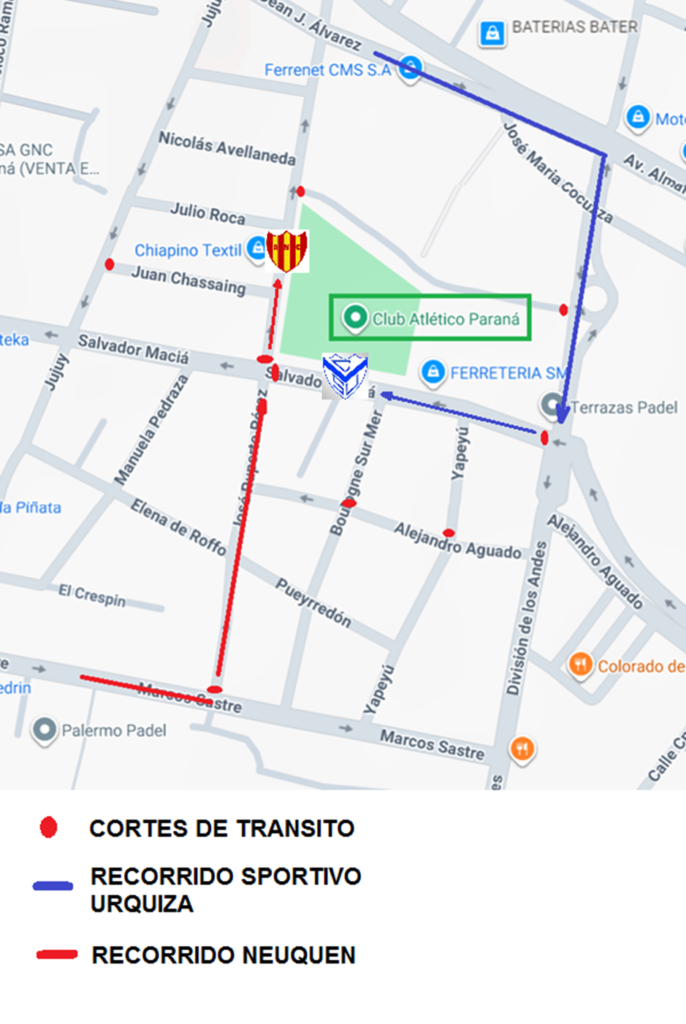 - Parcialidad de Sportivo Urquiza: acceso por Avenida Almafuerte, División de los Andes y Maciá, hasta el portón visitante.