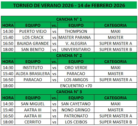El primero enfrentará a Paracao desde las 15:40 en cancha 2 y Los Crack estará jugando el Interzonal ante Master Paraná a la misma hora en Cancha 1.