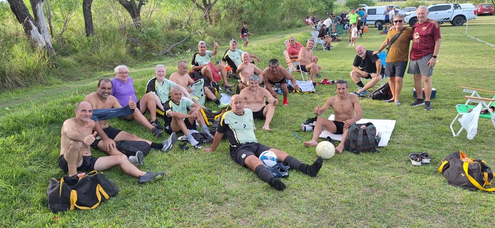 El plantel de Agrupación Alegría, disfrutando a pleno luego del contundente triunfo sobre San Benito por 6 a 0