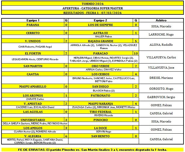 Por su parte los otros dos líderes que son Universitario y Maipú Naranja, vencieron a Pinocho 3 a 0 y a Amistad 4 a 2 respectivamente.