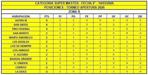 TABLA DE POSICIONES – ZONA B