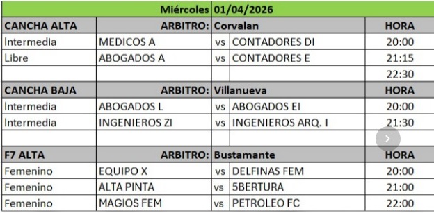 Ingenieros z, uno de ellos estará enfrentando a Contadores D en Cancha Tres y el otro puntero que es Contadores J lo hará en Cancha Cinco ante Ingenieros A.
