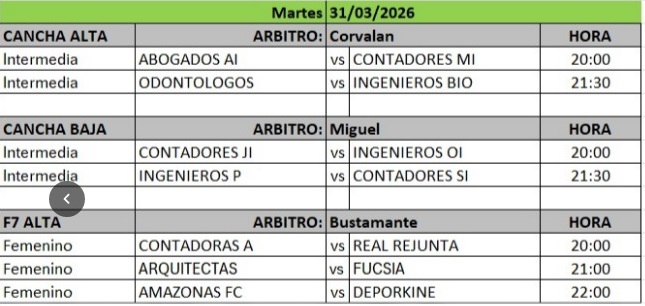 15:30 – Ingenieros A – Contadores J – Cancha Cinco