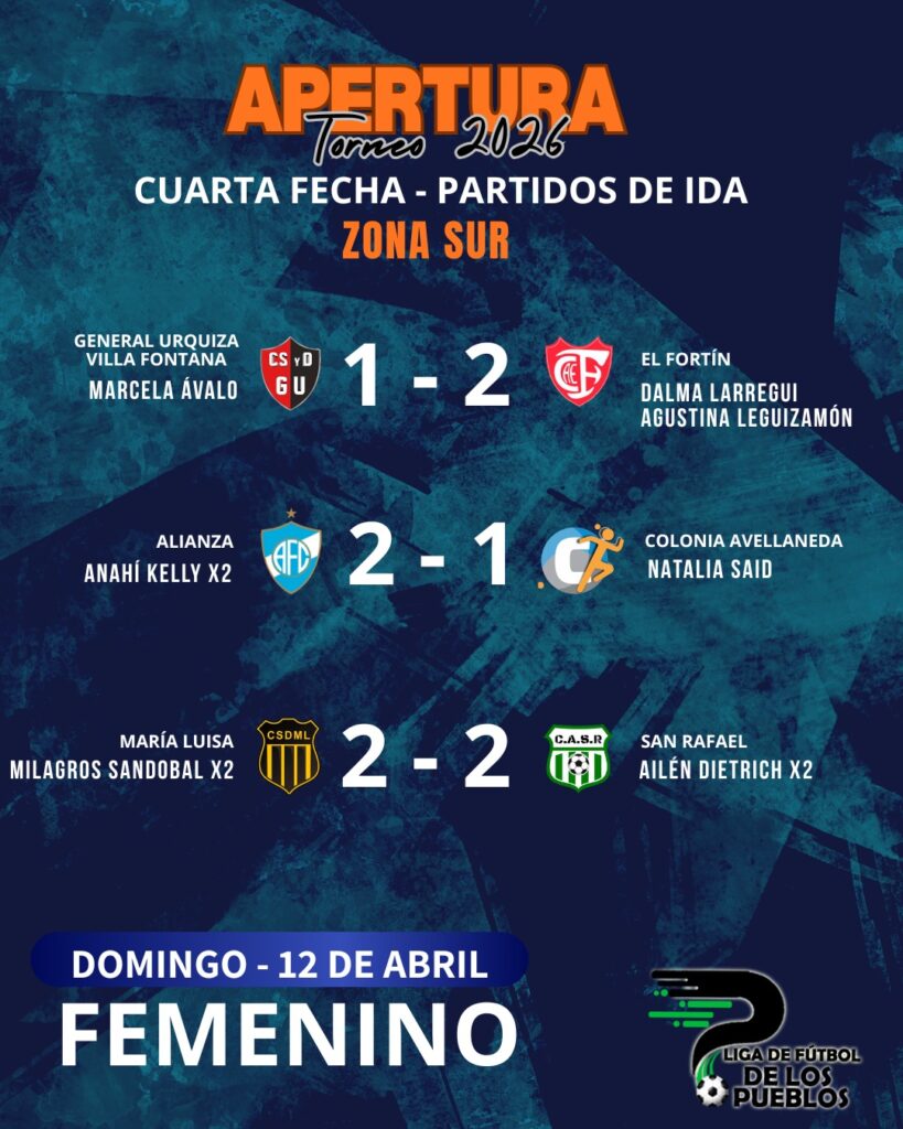 Y en Femenino, los dos triunfadores golearon: 4-0 Del Progreso a General Urquiza de La Picada y 3-0 Defensores a El Pingo.