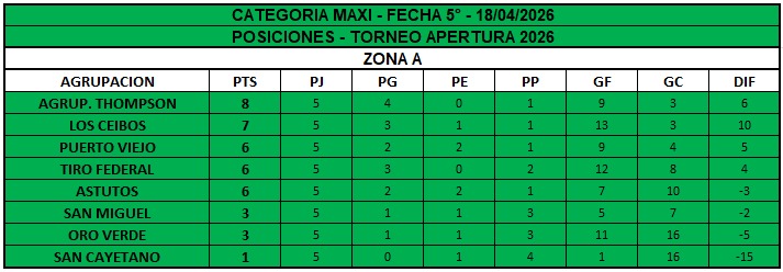 TABLA DE POSICIONES