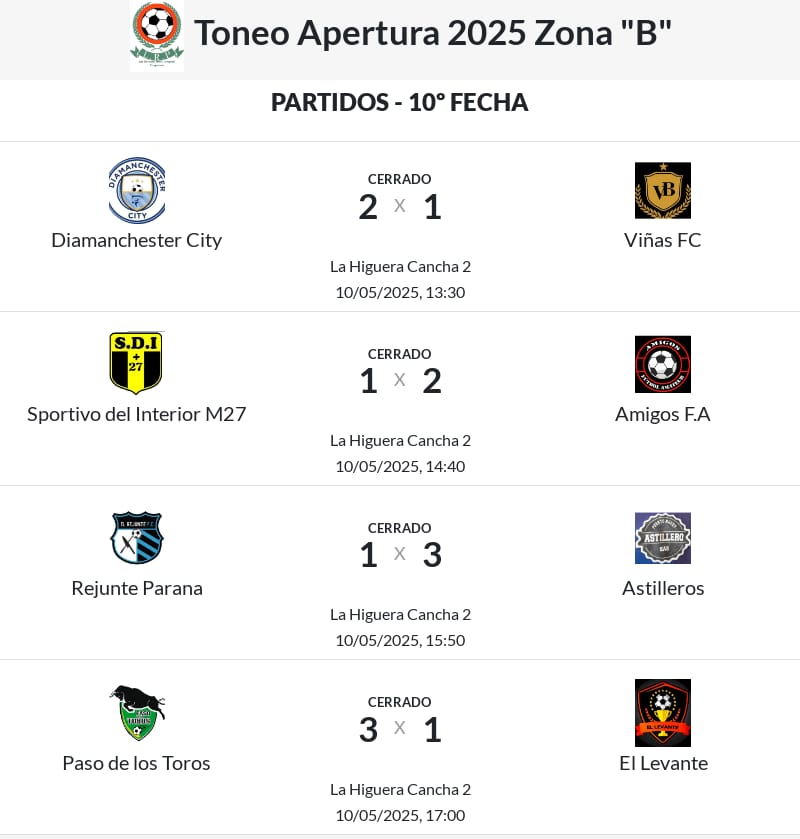 El Rejunte de Diamante segundo con 23 puntos y Amigos FA tercero con 22 también obtuvieron los tres puntos.