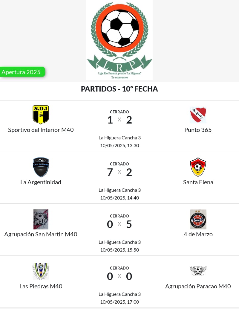 Liga Río Paraná disputó el sábado pasado la Decima Fecha en ambas Categorías M27 en sus dos zonas y M 40