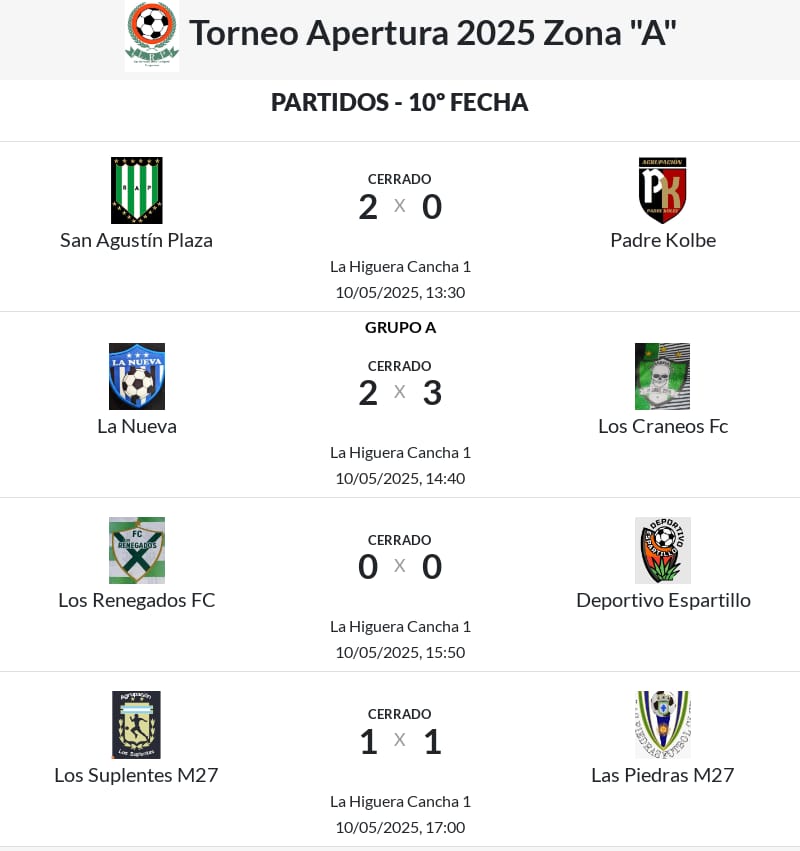 En cuanto al ahora único escolta que es el equipo de San Agustín Plaza, le ganó a Padre Kolbe por 2 a 0.