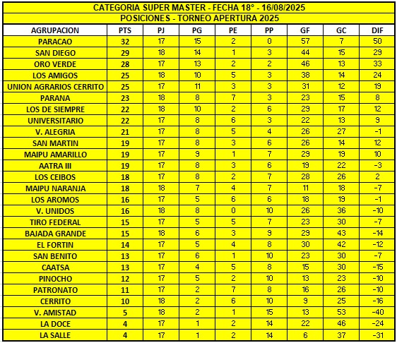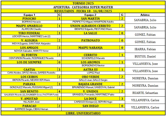 Las mayores novedades pasan en el presente por la Categoría Súper Master, donde aún está en disputa el Apertura y se transita en la parte final del torneo.