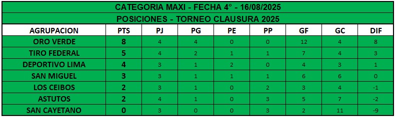 Oro Verde no detiene su marcha y con cuatro victoria en igual cantidad de presentaciones lidera con 8 puntos, a tres de su escolta Tiro Federal.