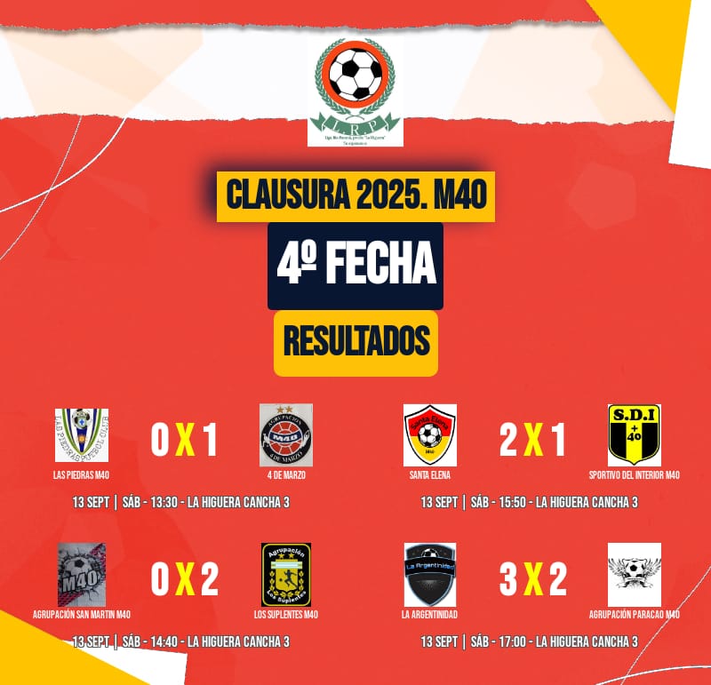 En la Categoría M40, dos equipos comparten la cima desde el sábado pasado; en una fecha que tuvo buenos partidos.