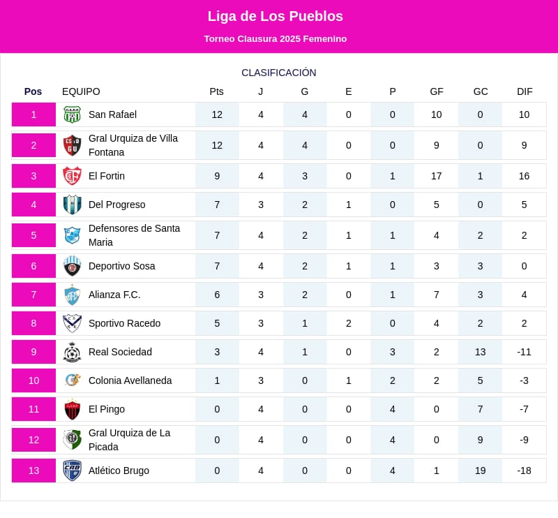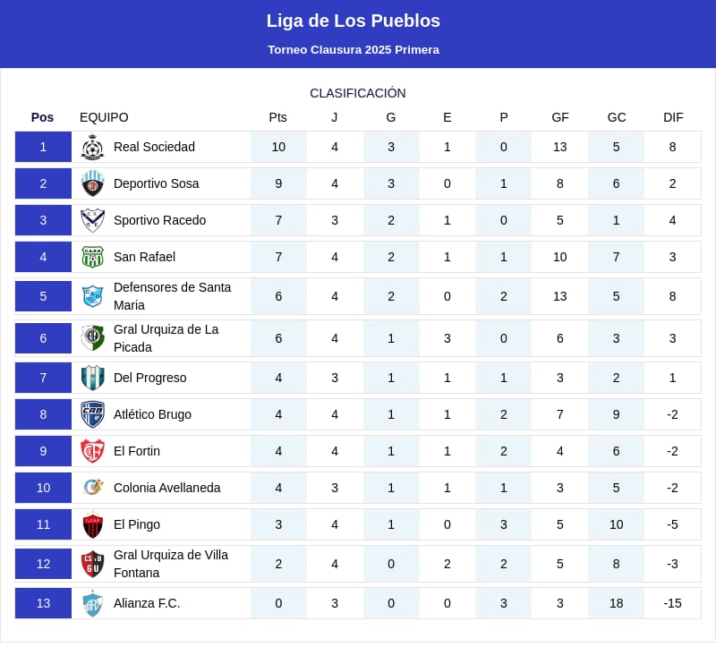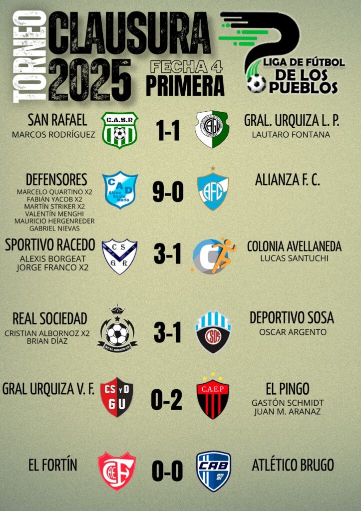 Pasó otra excelente jornada de domingo para la cuarta fecha y hay nuevos líderes en Liga de los Pueblos.