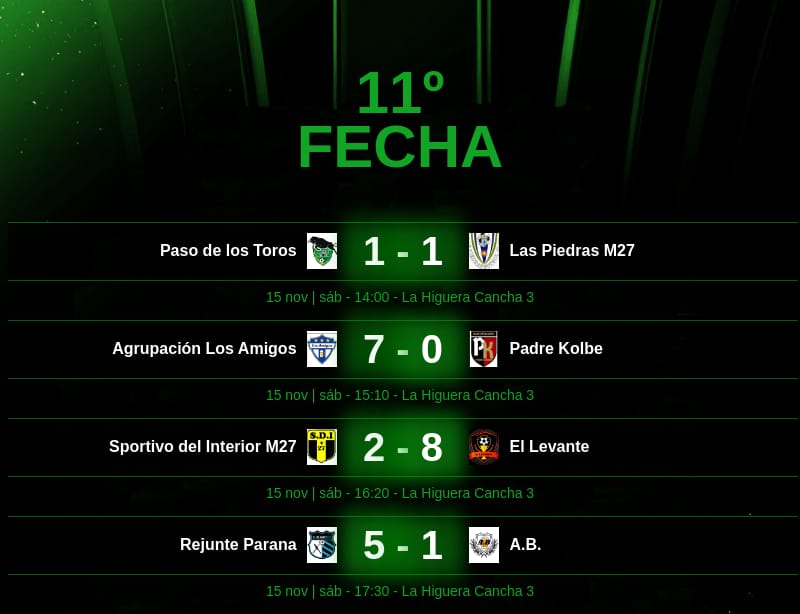 Se disputó el último sábado una nueva jornada en LigaRío Paraná, con el desarrollo de la undécima fecha del Clausura 2025.