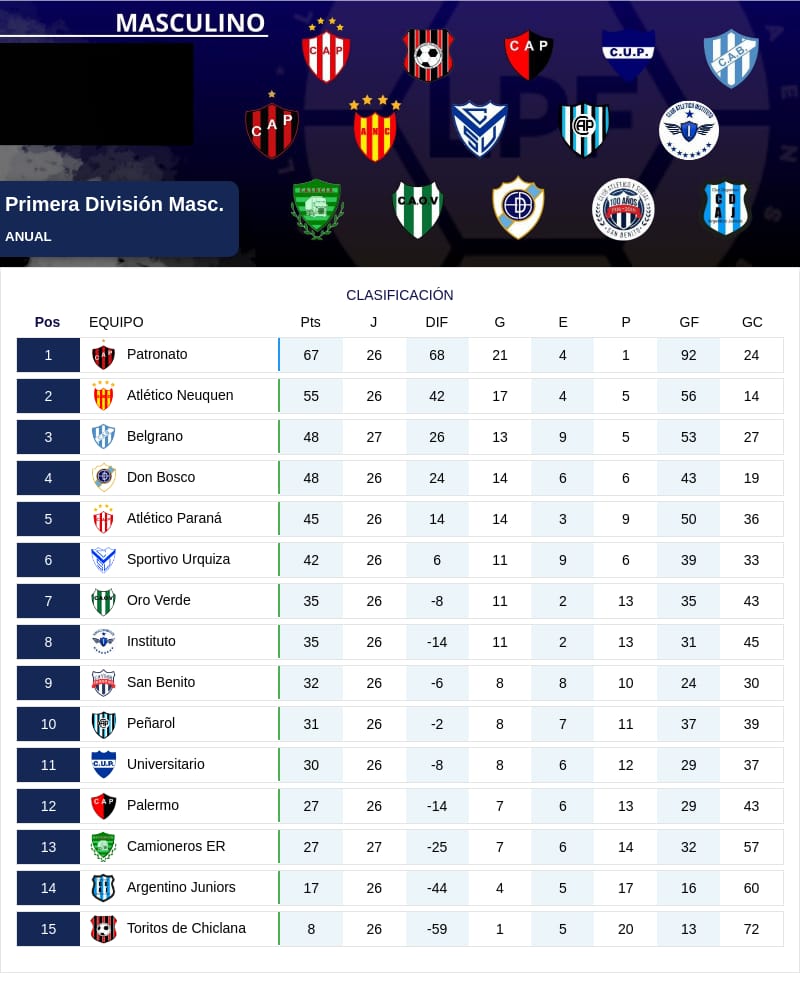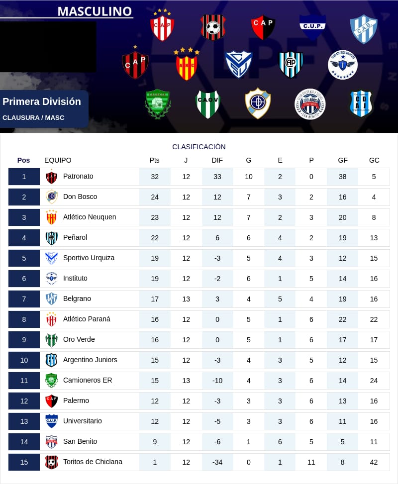 Quién no tiene estos problemas es Patronato; cómodo puntero que tiene el Clausura y ya clasificado directamente a los Cuartos de Final.