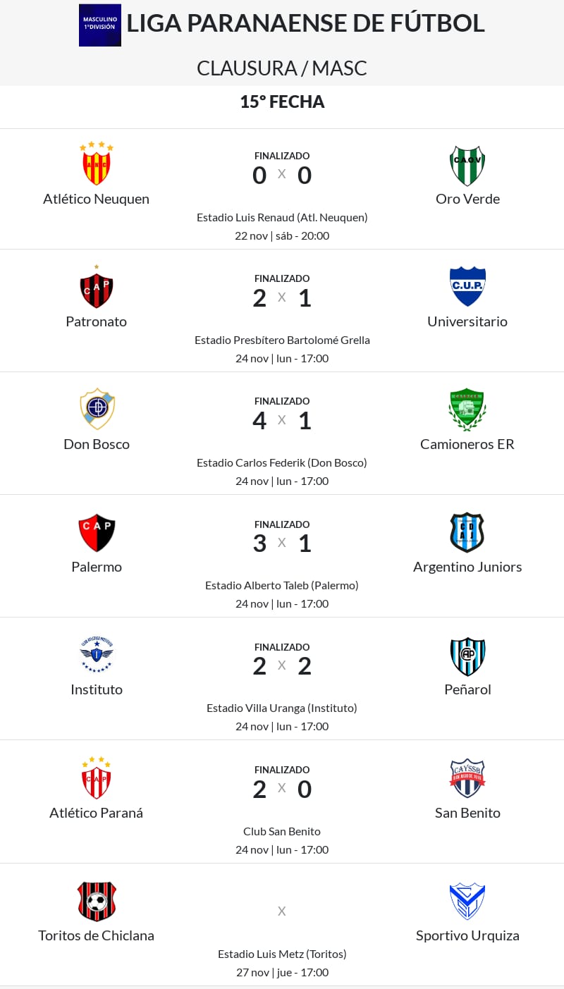 Una muy atractiva jornada fue la última de la etapa regular de la Liga Paranaense a la que igualmente le falta un encuentro por disputarse entre Los Toritos y Sportivo Urquiza.