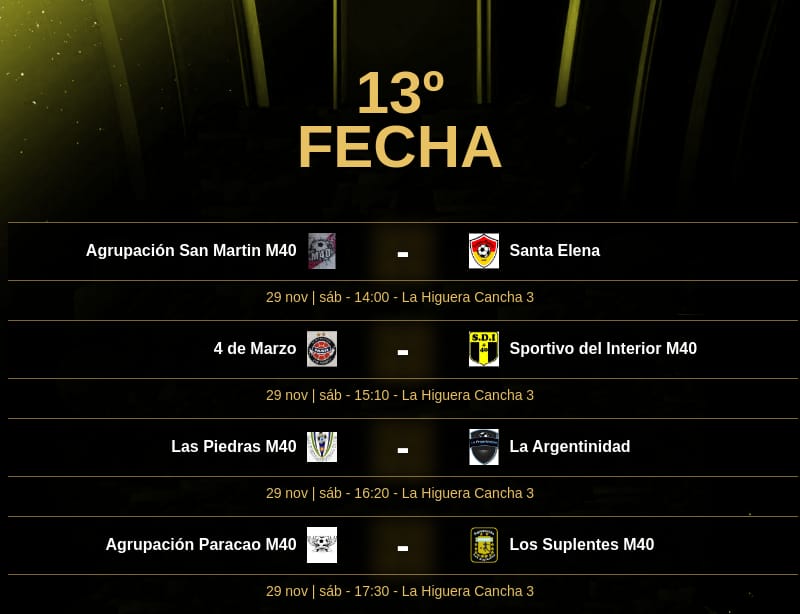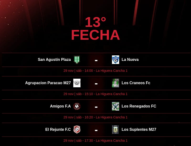 Se juega la Decimotercera fecha en el Complejo La Higuera con partidos que pueden incidir mucho de cara a lo que viene en cada categoría
