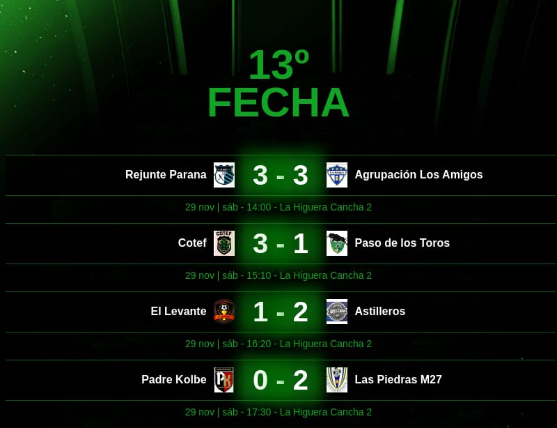 El sábado se jugó la Decimotercera fecha del Clausura 2025 en Liga Río Paraná.
