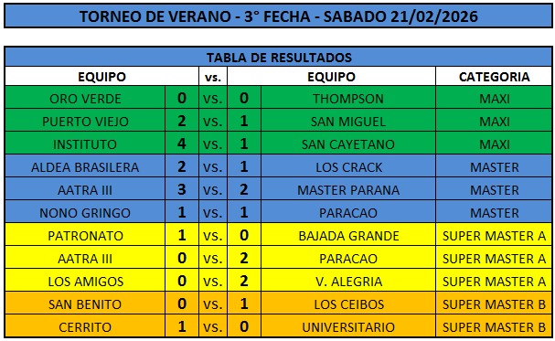 En Liga de Veteranos se jugó el último sábado la tercera y última fecha de la etapa regular del Torneo de Verano en las distintas categorías.