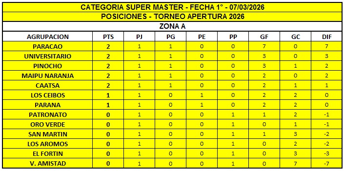 VIDEOCOMPACTO: contiene más de 8 minutos del partido disputado por la Primera fecha del Torneo Apertura 2026 en la Categoría Súper Master Zona A